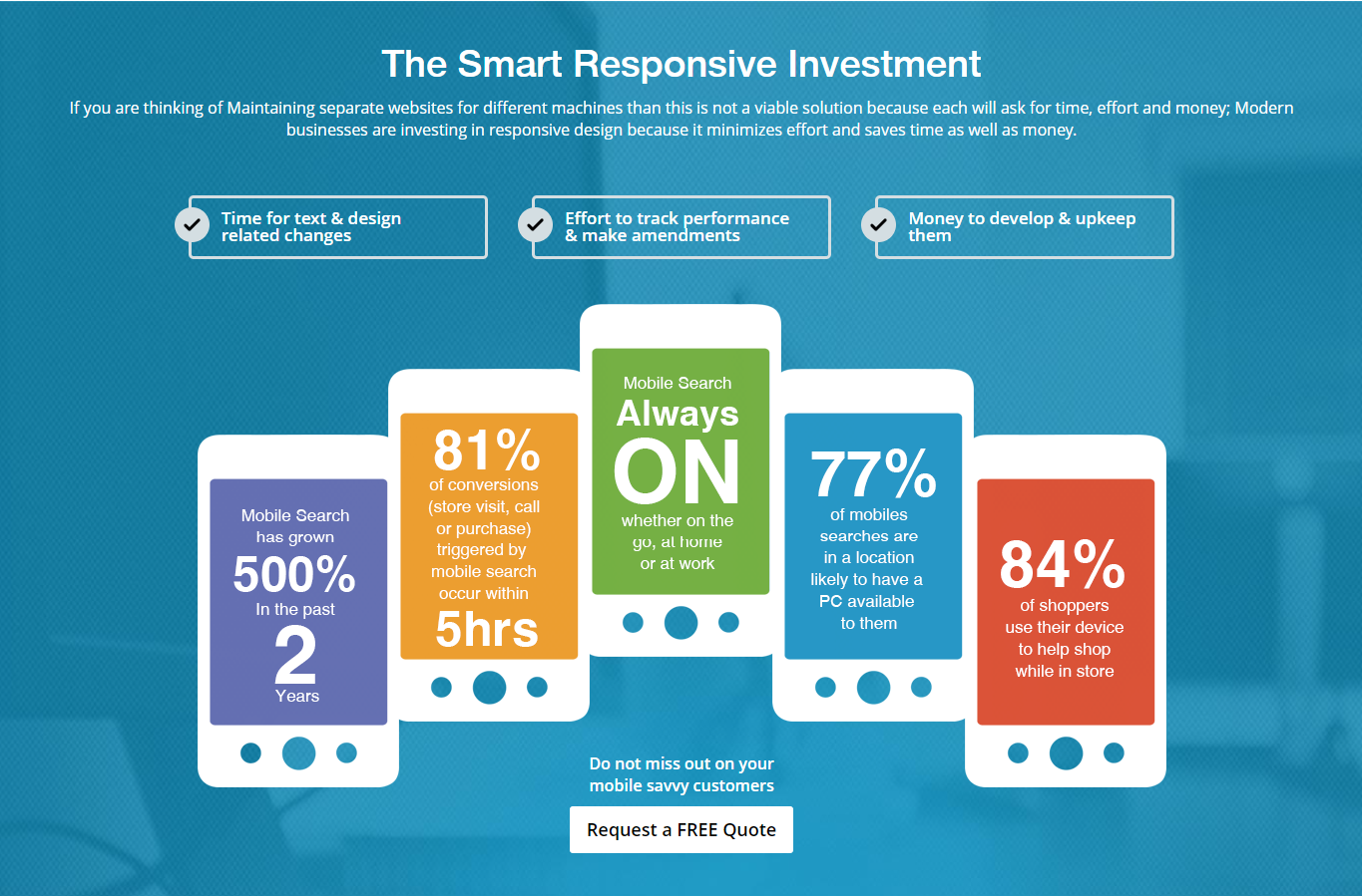 90% of people are switching to multiple screens to browse the internet! So, to target all your potential clients it’s important to have a website that is optimized for all devices. Responsive websites have a single URL and HTML code which gets optimized according to the screen resolution on which it is opened thus giving an optimum viewing experience.