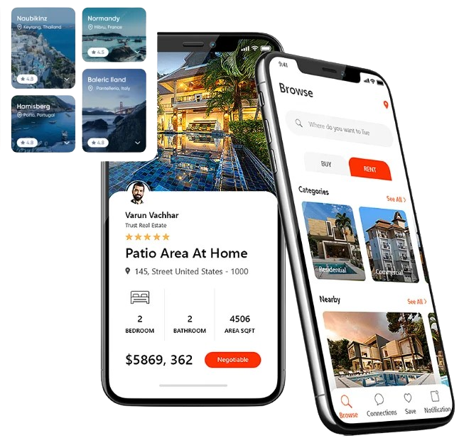 Transform your real estate operations with our team of expert app developers, pioneering custom solutions to streamline processes and redefine property transactions. From buying and selling to renting, our apps revolutionize how people interact with real estate while ensuring strict compliance with industry standards.